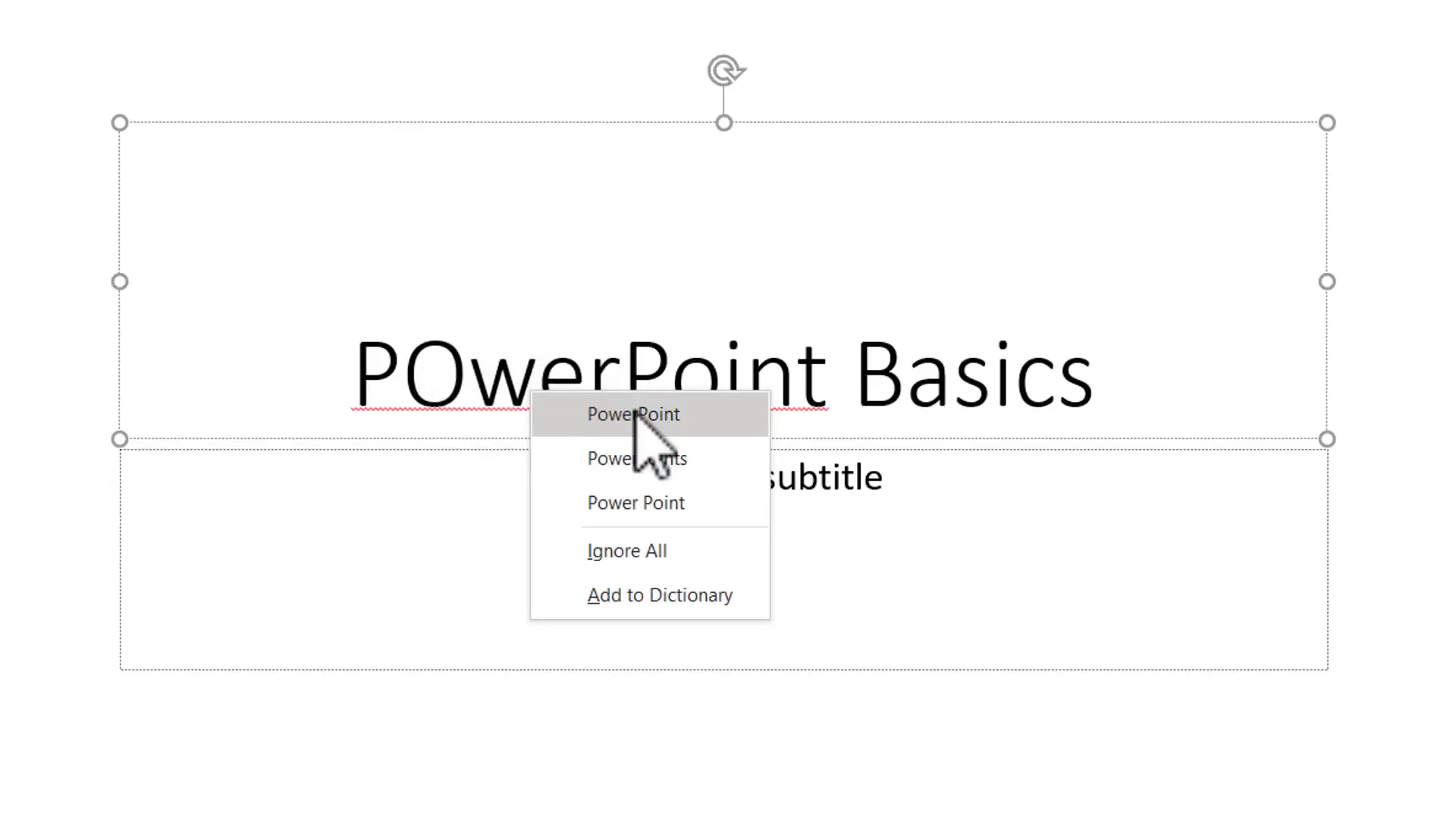For example, you can write “PowerPoint Basics” as the title and add your name as the subtitle.