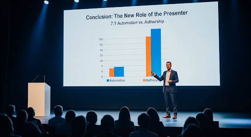 The Presentation Paradox’s ultimate tragedy is that the effort put into these artistic and administrative tasks frequently takes away from the message, which is the most important component. The technical part of generating slides often takes lead over the typical message, however this should be the main focus. To know exactly that their time is spent on strategy and delivery, not the slide development, modern presenters must overcome this fundamental inefficiency, where the tool ends up dominating the intention. As we will see, the answer is to use AI wisely.