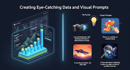 Visuals seal the story that words tell. An excellent presentation demonstrates concepts rather than merely explaining them. Static text is transformed into data-driven, design-conscious storytelling during this stage by asking the AI to think visually.